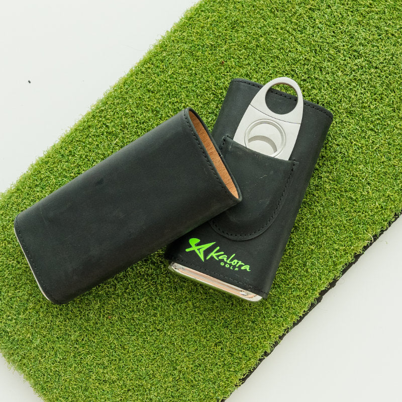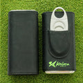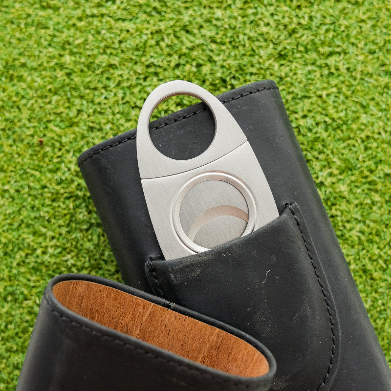 Genuine leather cigar case, Spanish cedar wood lined with a stainless steel cigar cutter (6.5" x 3" x 1.2" total case size). Perfect for protecting your favorite cigars on the golf course or anywhere else you want an ideally fresh stogie close at hand.
