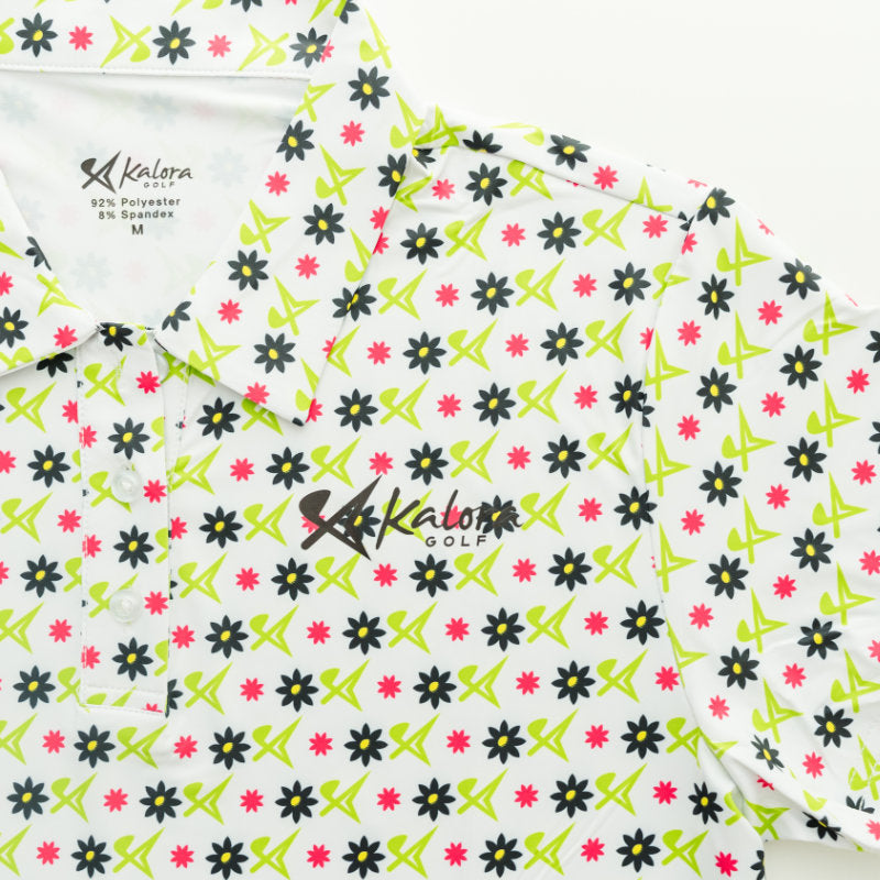 Stand out with the Lime Blossom Polo, a fresh take on classic style, combining the crispness of a white polo with soft pink and bold black floral accents and a pop of lime green. With moisture-wicking fabric and a lightweight feel, it’s designed for all-day comfort on and off the course.