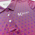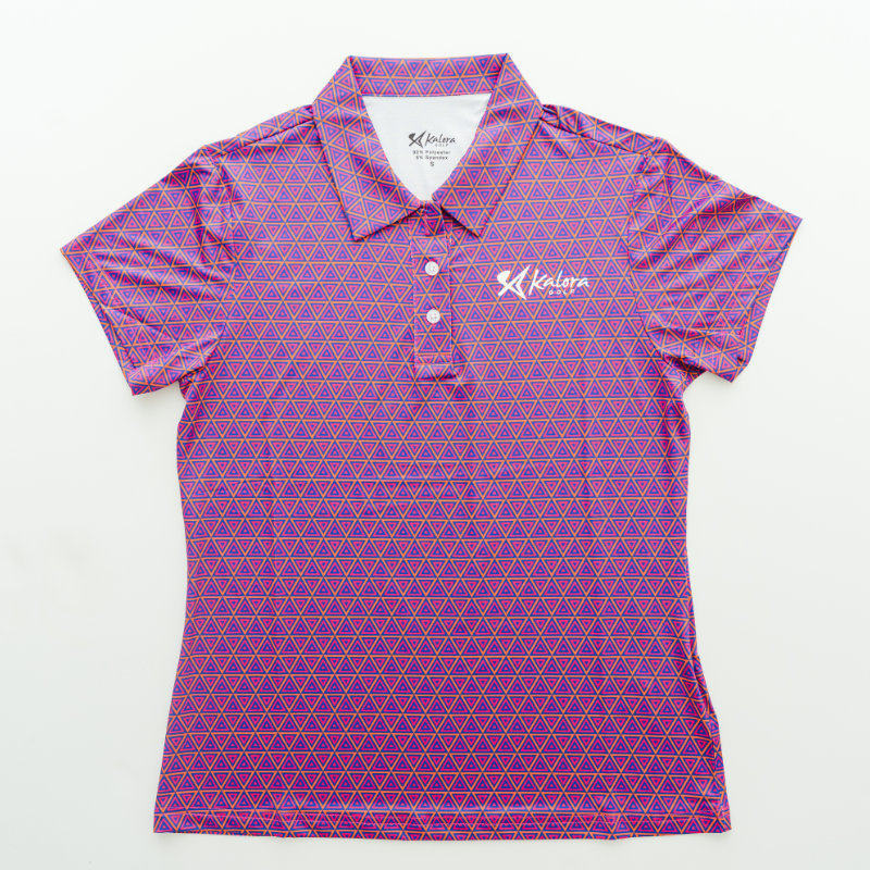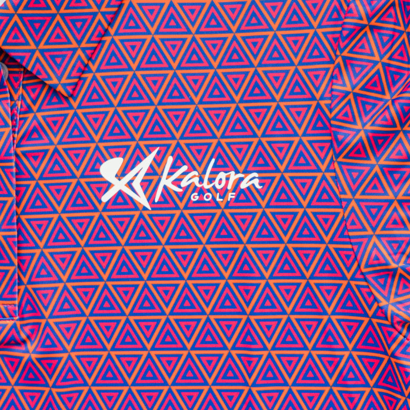 Designed for the confident and stylish woman, the Sunset Swing Polo features a striking pattern of blue and orange concentric triangles on a vibrant pink backdrop. Our polos are made from moisture-wicking, wrinkle-resistant fabric that keeps you cool and comfortable while offering the perfect amount of stretch. Whether you're perfecting your swing or enjoying a casual afternoon, this polo is a must-have for your wardrobe.
